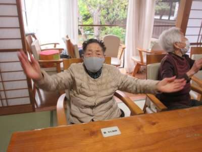 幸せの幸望庵最長老も元気よく体操に参加してくれま