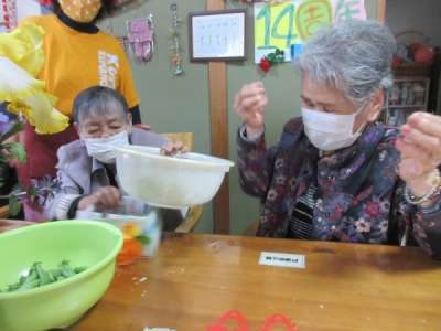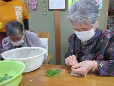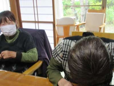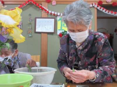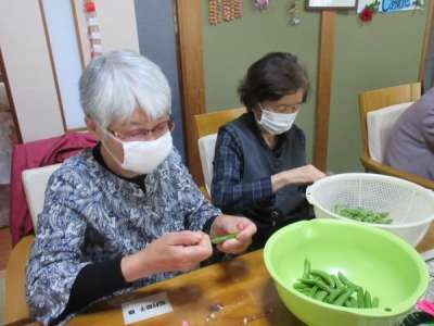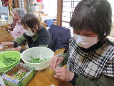 さやぶどうのヘタ取りを昼食後、機能訓練もかねて