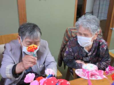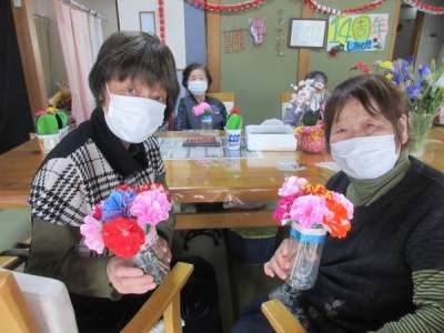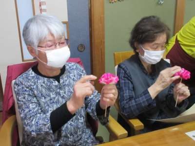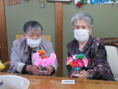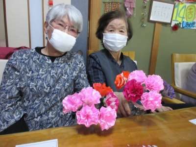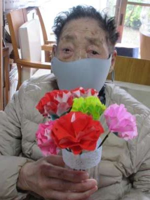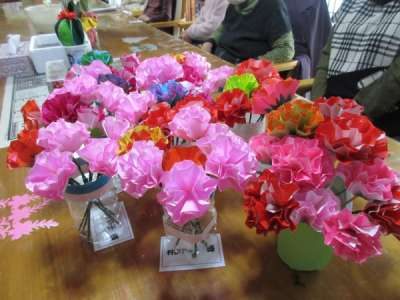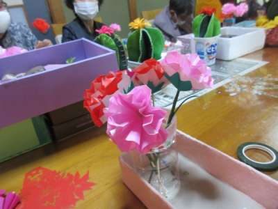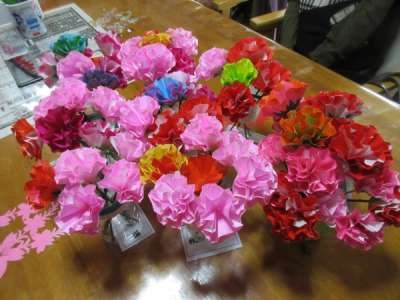 全員の折り紙のカーネーション集合です