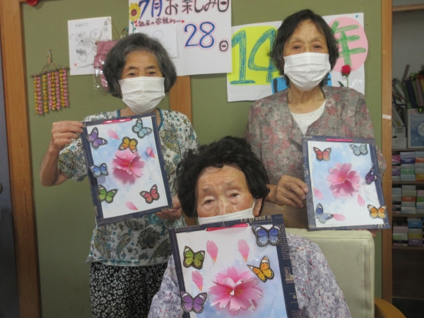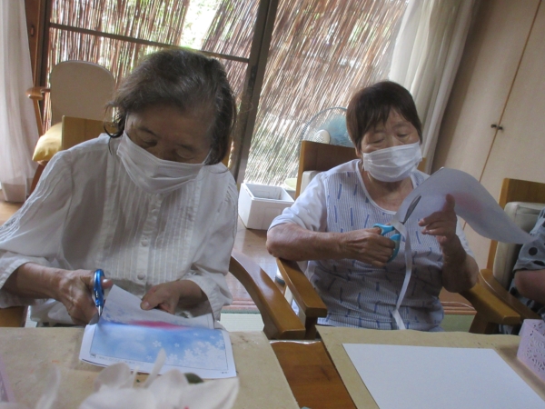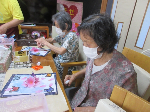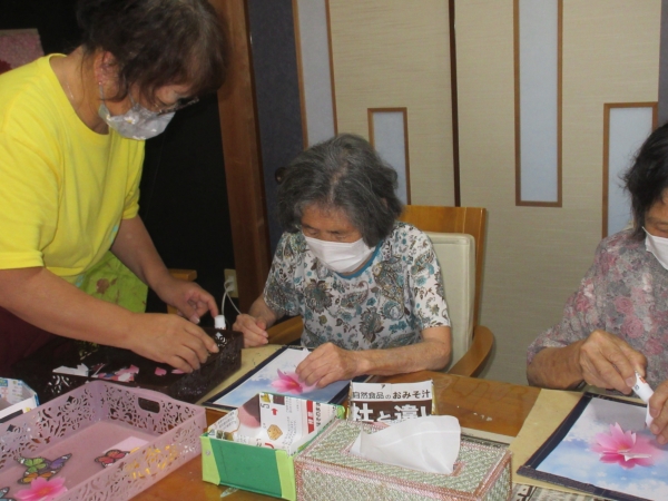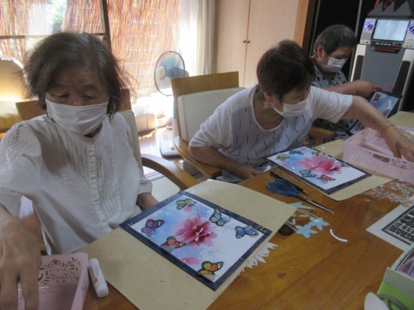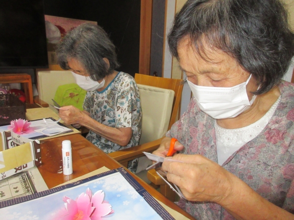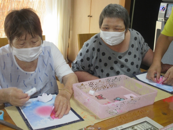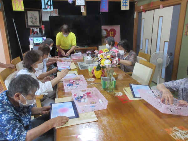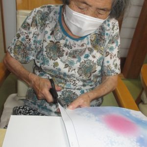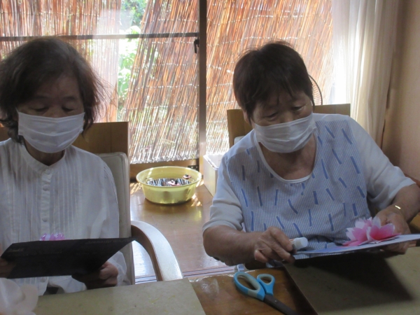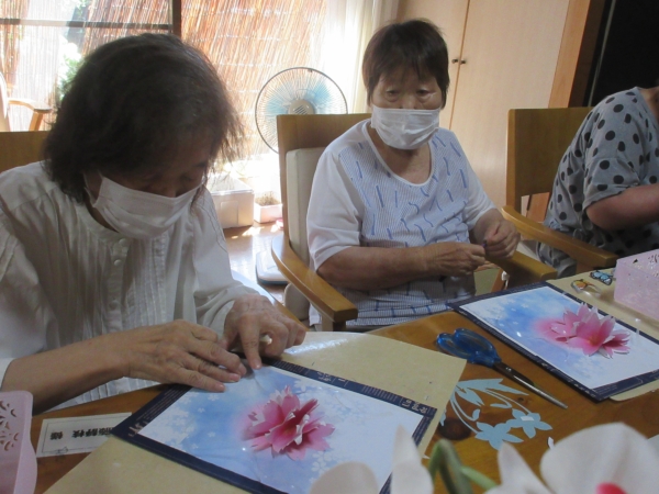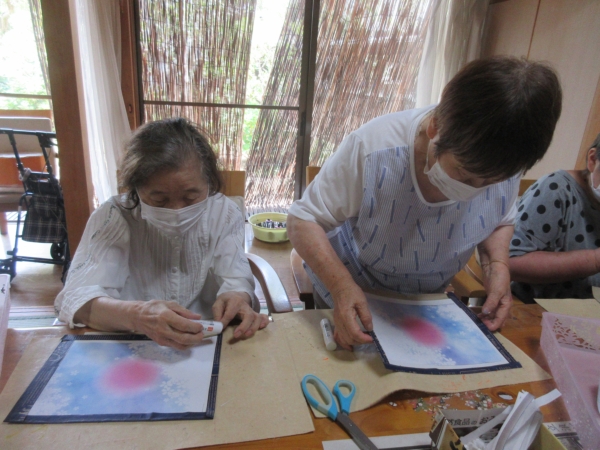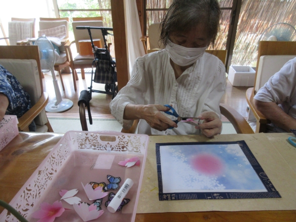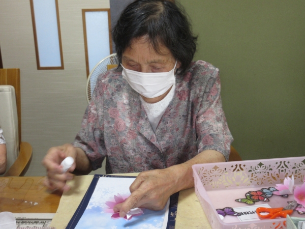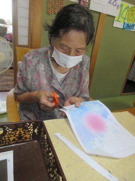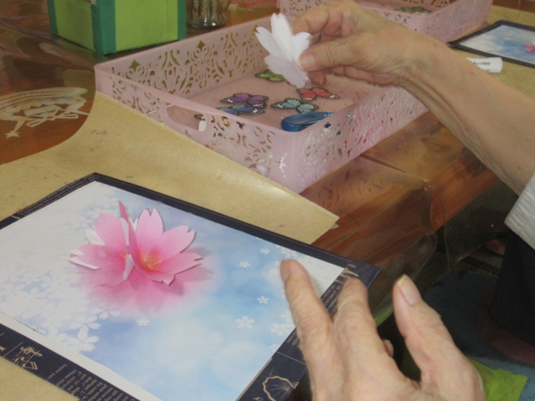 意外と難しいですが母達綺麗に花を貼ってくれました