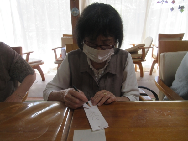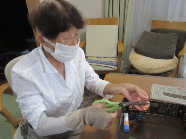 皆さんが描いた模様をスタッフがカッターで切り抜きました