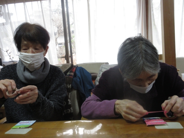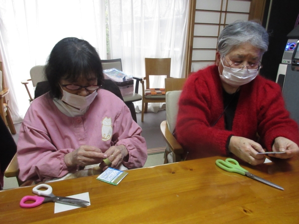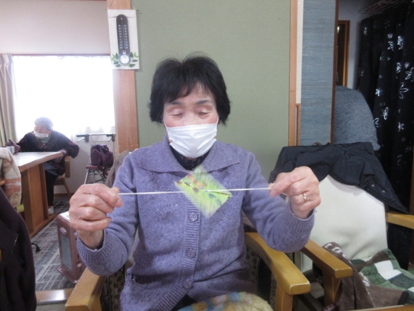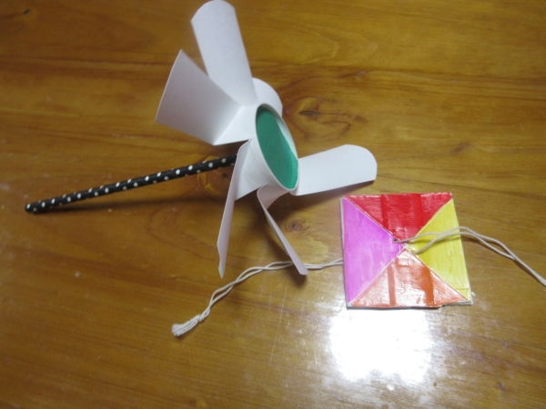 こちらはスタッフお手製の紙コップトンボとぶんぶんコマです
