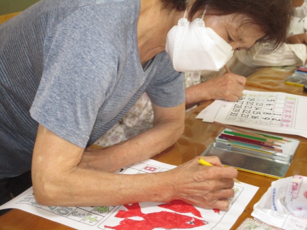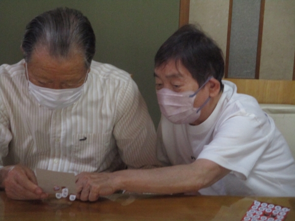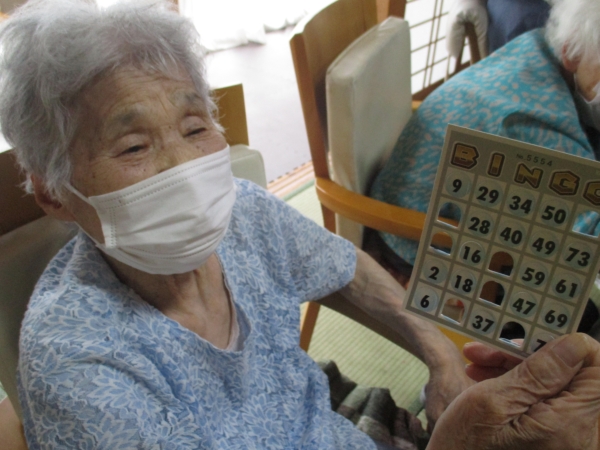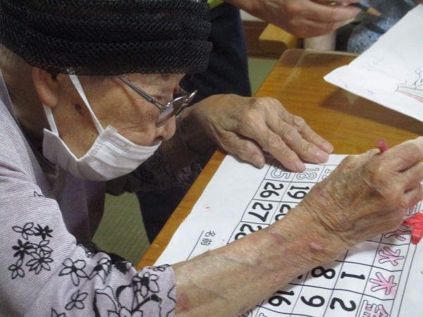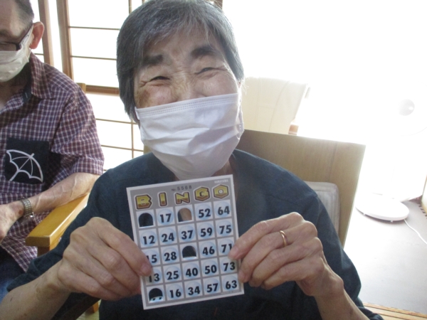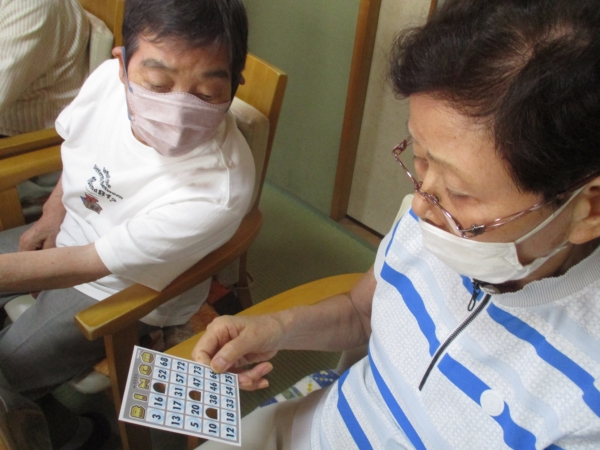お隣り同士で数字の確認もしながらビンゴ待ち