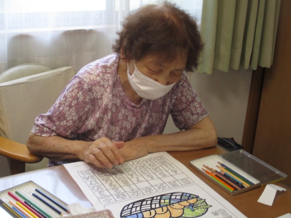 立ちながら塗り絵をしている姿がとても素敵でしたので