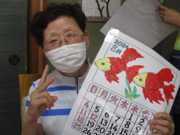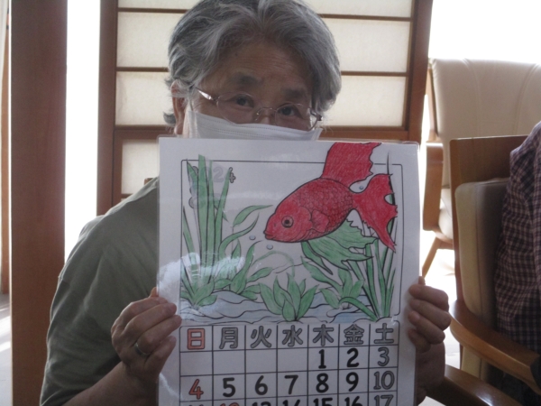 金魚が完成したらカレンダーに貼り付けて完成になります