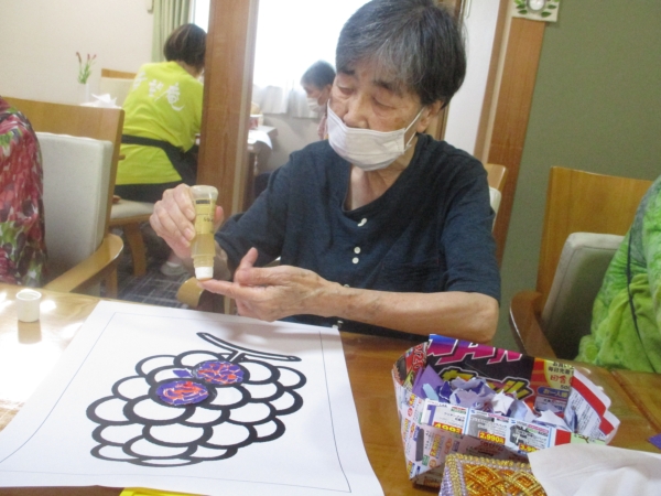 本日のレクリエーションはちぎり絵です🍇
