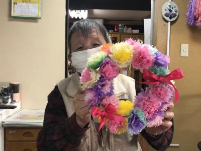 お花紙で作ったお花で、とっても可愛いリースを作りました