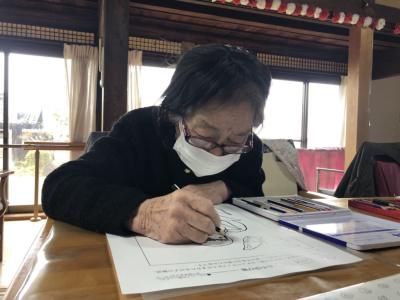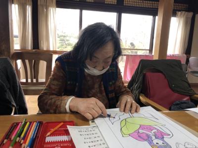 朝は、塗り絵や計算問題など、自分に合った物を選び