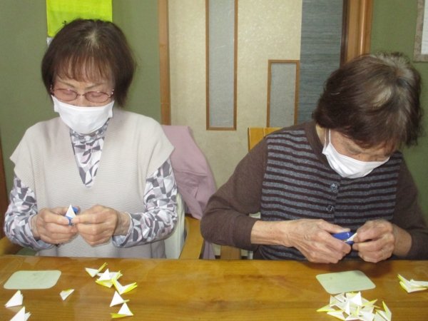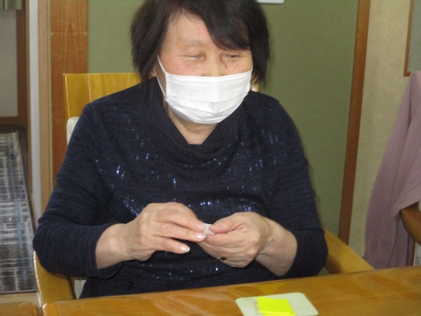 小さな折り紙を沢山折る作業は