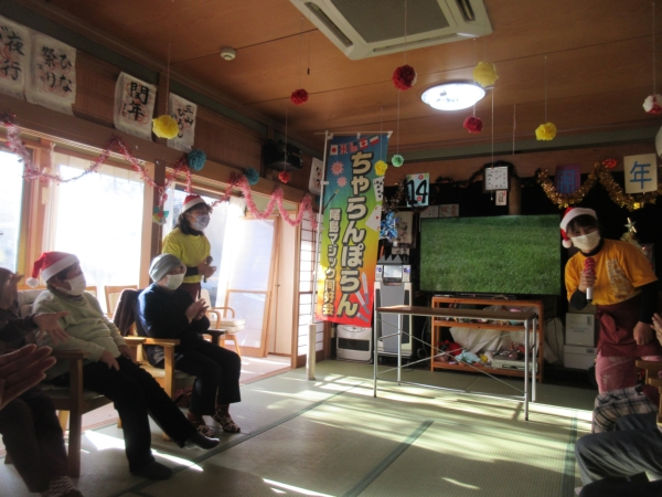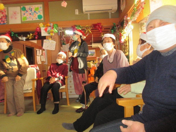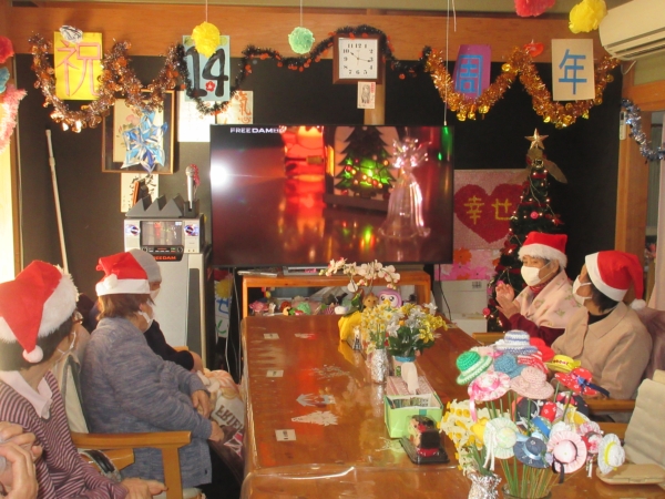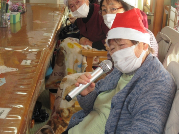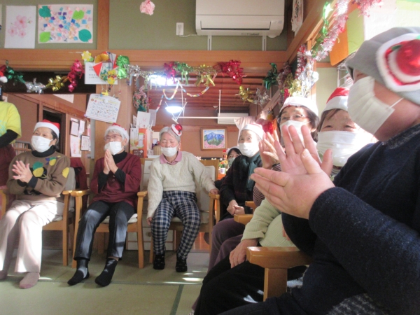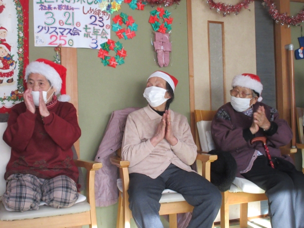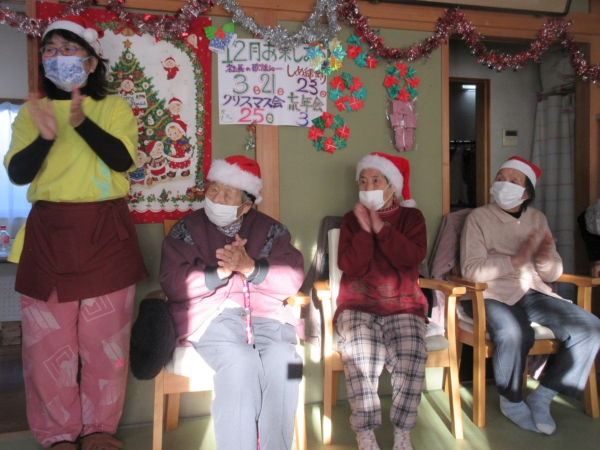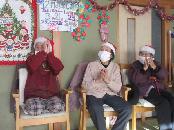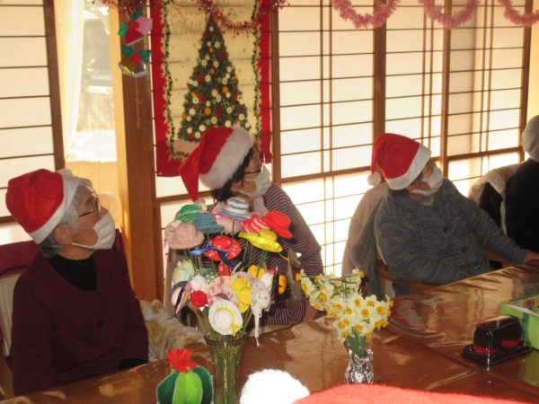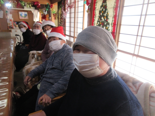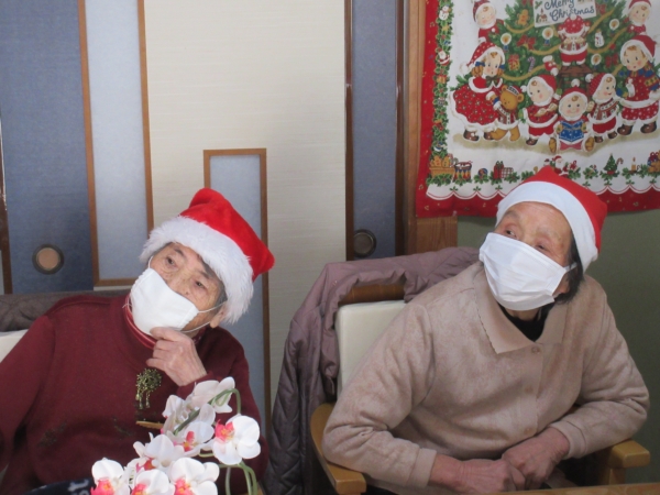 幸せの母達がサンタ帽子をかぶりサンタ気分です