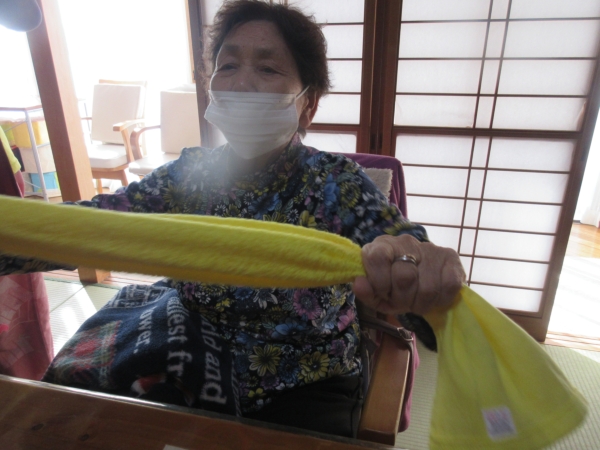 結んだタオルを上に投げて、落とさないようにつかみますよ~