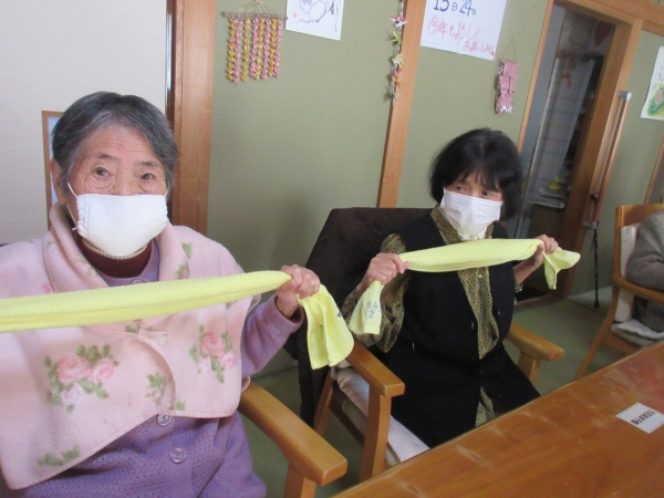 今度は、片方の端を結んで❝肩叩き❞を行います