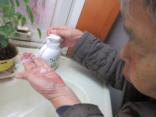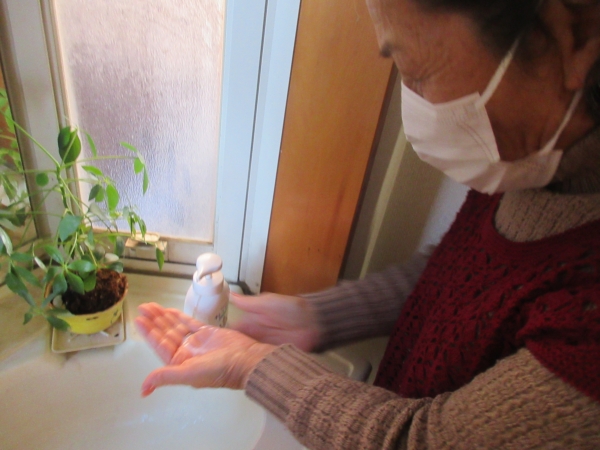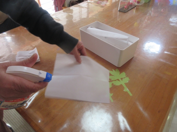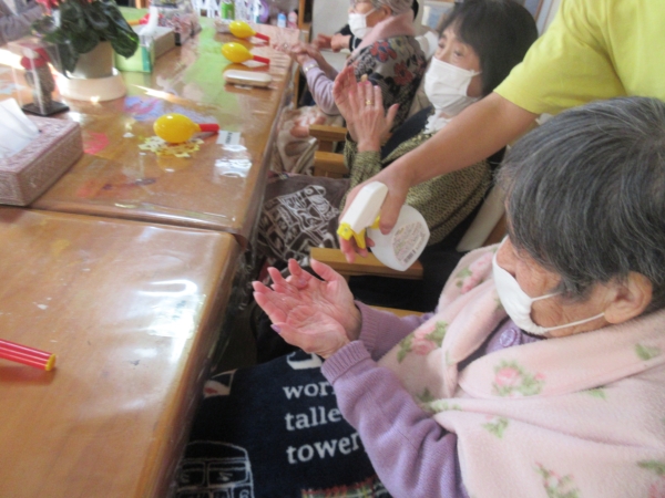 おやつ休憩の前にアルコール消毒を行っていきます