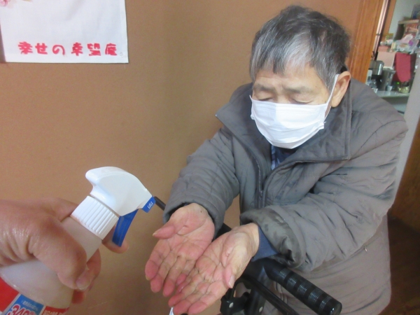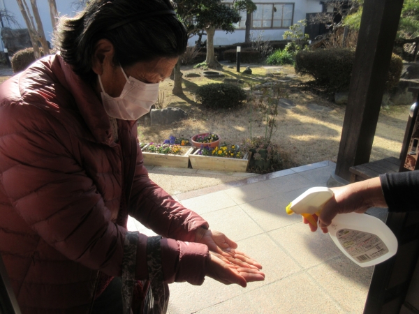 アルコール消毒をしてお出迎えしています。