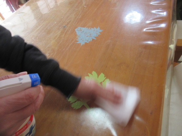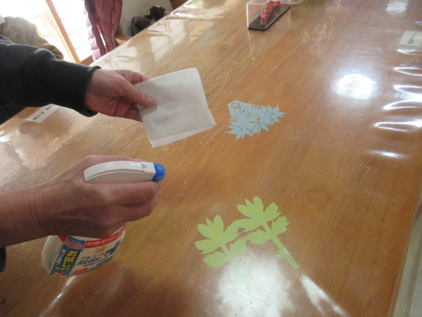 テーブルをアルコール消毒していきます