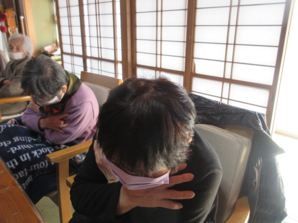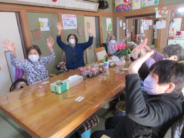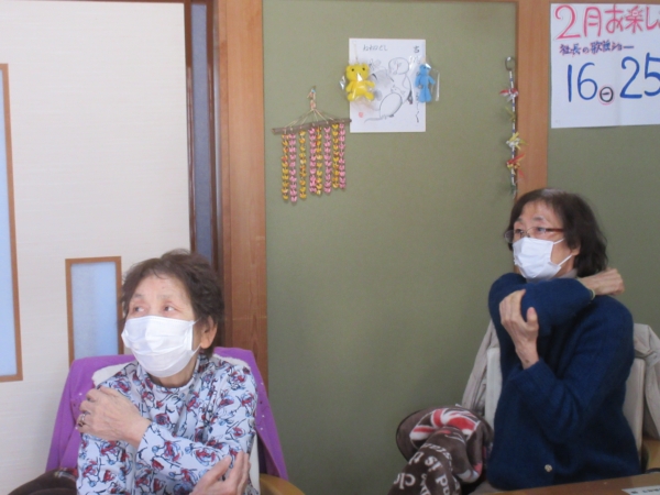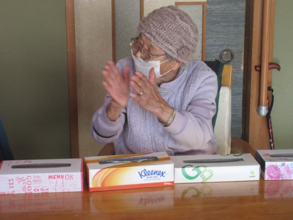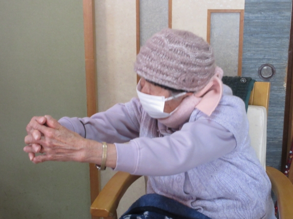 足の体操は、しっかりと膝を抱え胸まで引き上げましょう