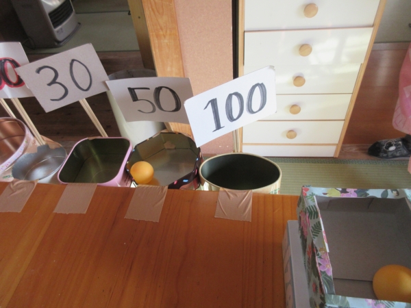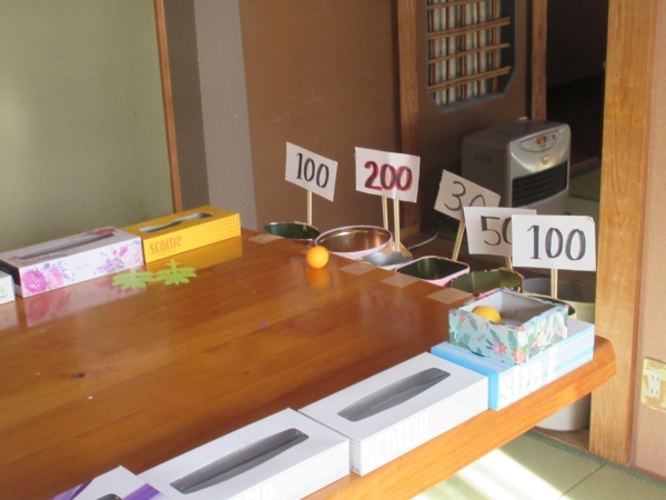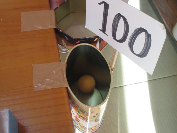 卓球用ラケットとピンポン球を使い、的めがけて打っていきます