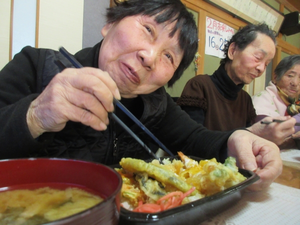 今日は、テイクアウトで月見野菜天丼を召し上がってもらいました
