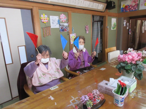 母達はスタッフのかけ声をよく聞き素早く旗をあげます