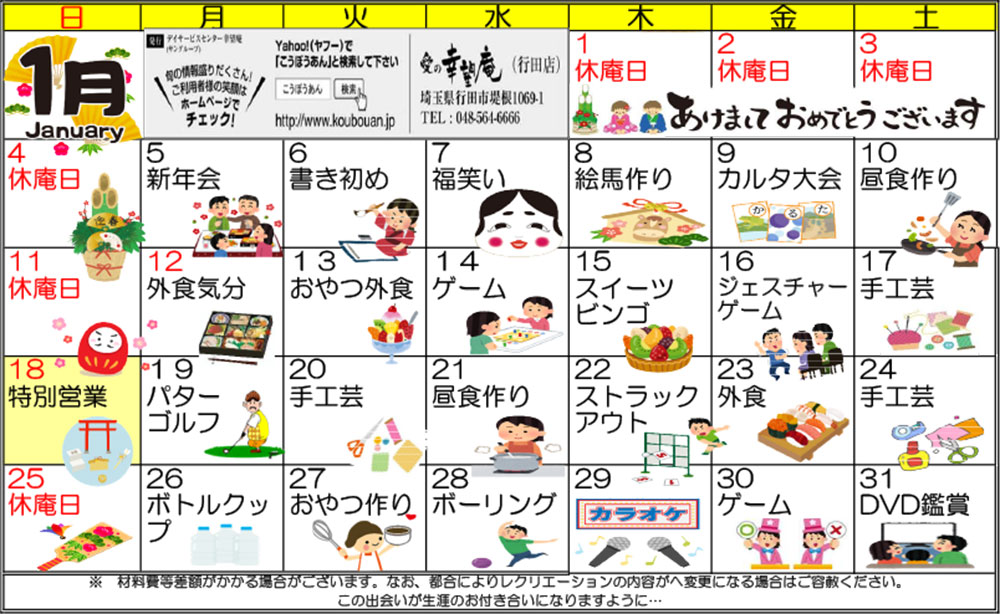 レクリエーション予定表