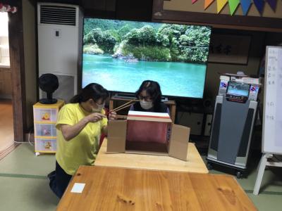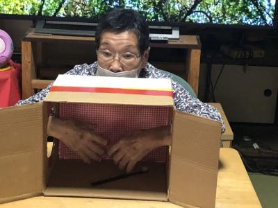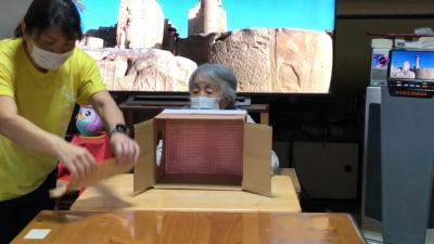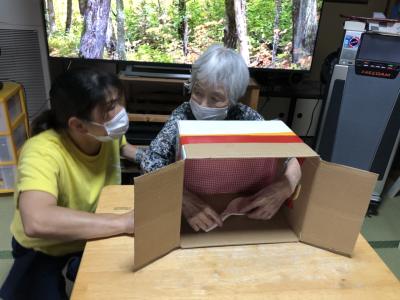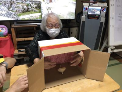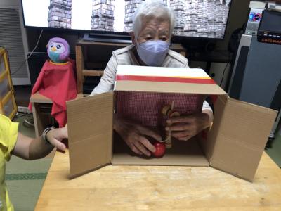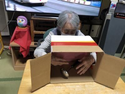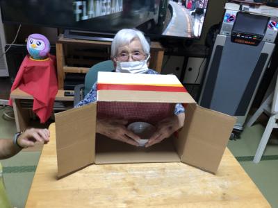 今日のレクリエーションは【箱の中身当てゲーム】で~~す\(^o^)/