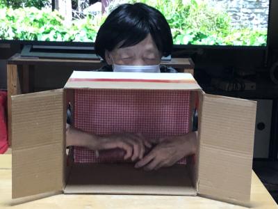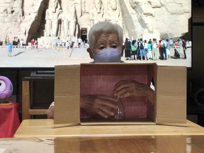 スタッフが箱の中にお題の品を入れるまで、回答者の皆さんには目を瞑って頂きます