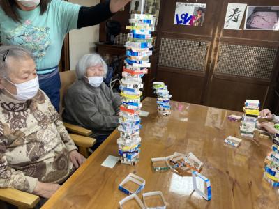母のタワー高く積めました
