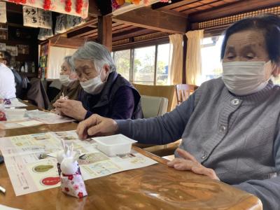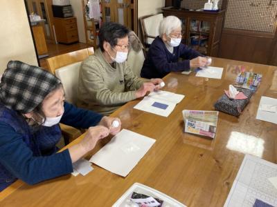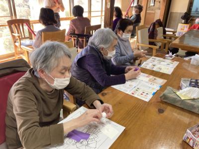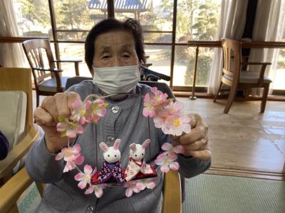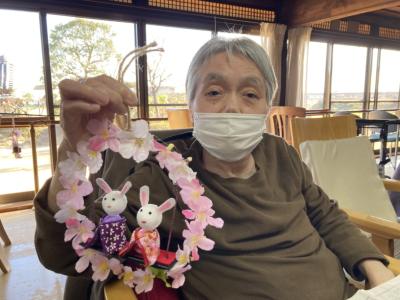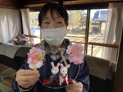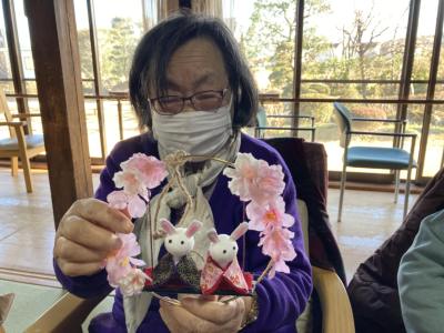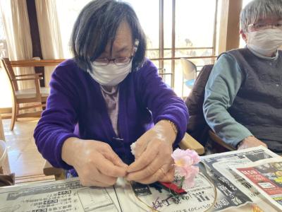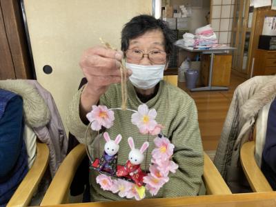 午後はお雛様を乗せる輪っかに吊るし飾りを作っていきます