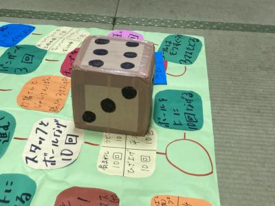 大きなサイコロを振り、出た目の数だけ駒を進めていきますよ~