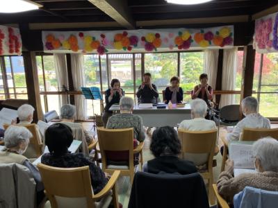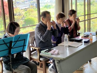 ハーモニカの音色に合わせ、皆さんの歌声が響き渡っていました