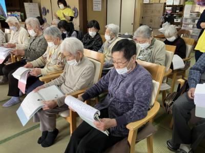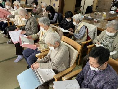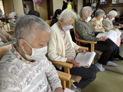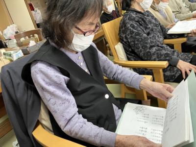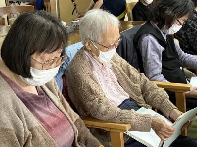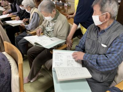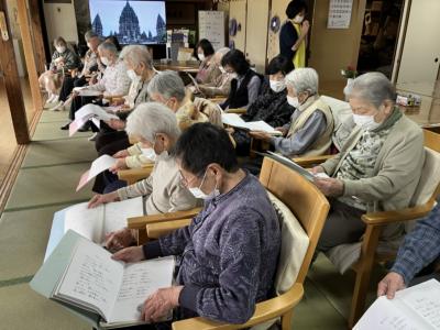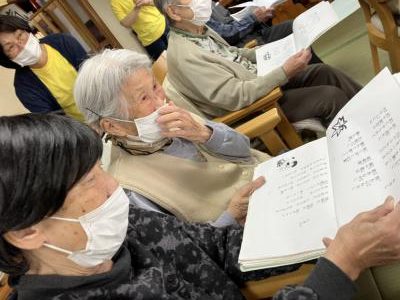 皆さん知っている歌だったので歌詞本を見ながら一緒に口遊み、