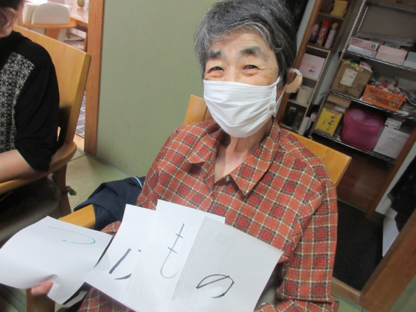 一枚の紙に一文字ひらがな50音を書いて頂きました