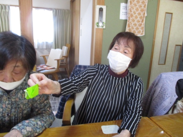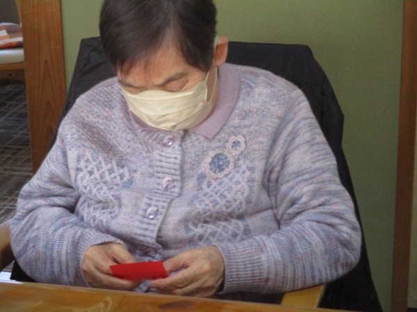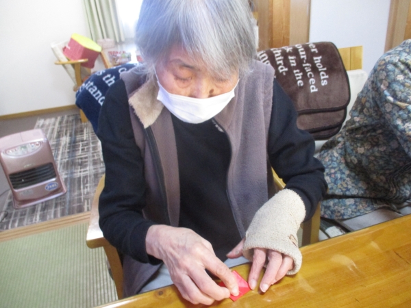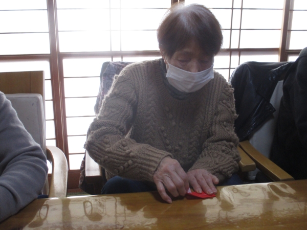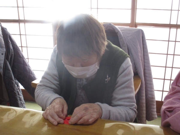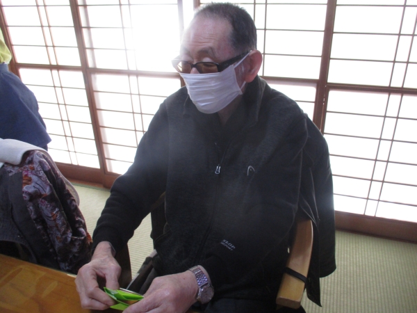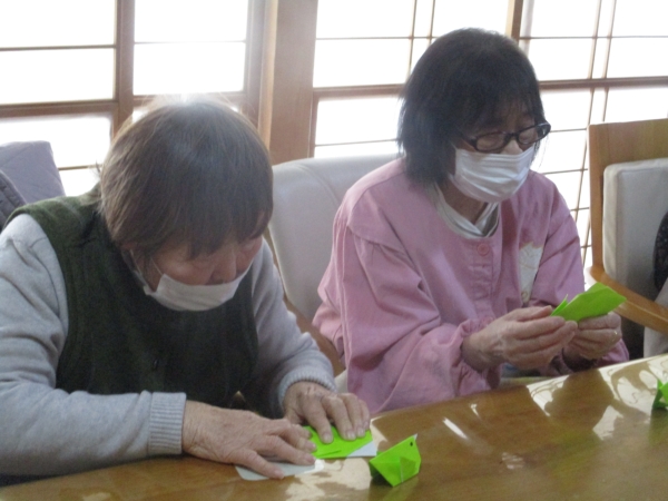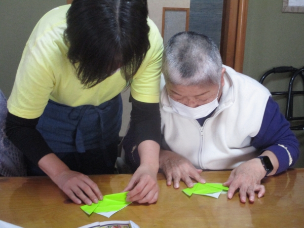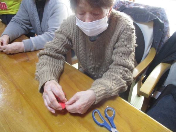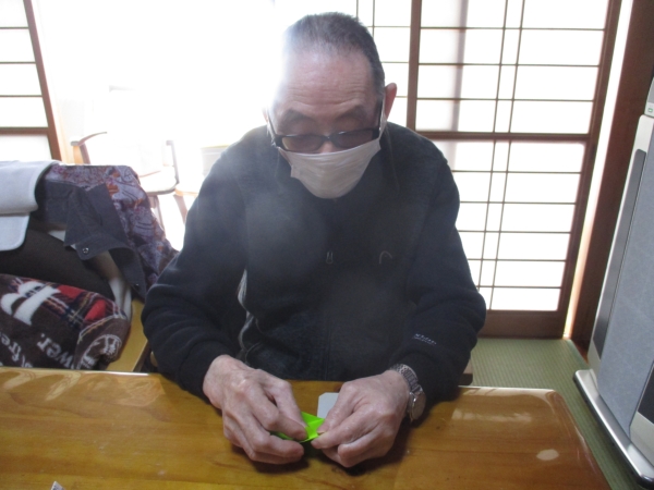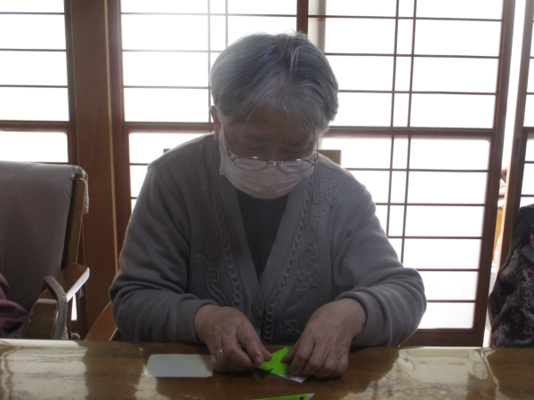 今日は、手工芸で折り紙を使ってウグイスや梅の花を作り行います。