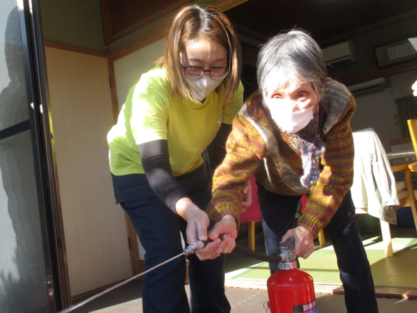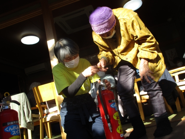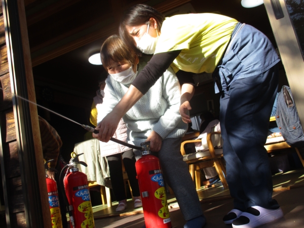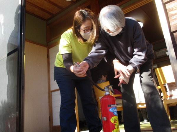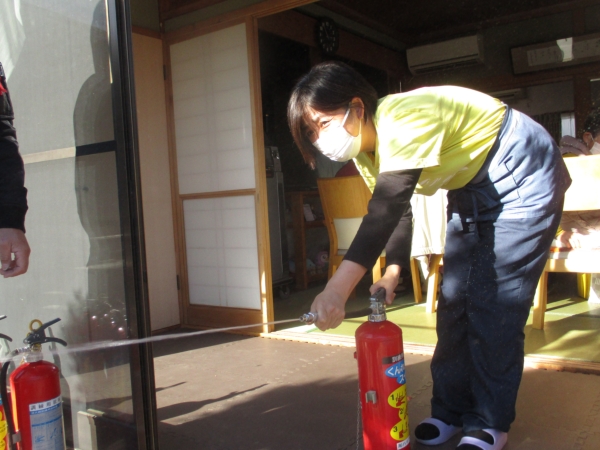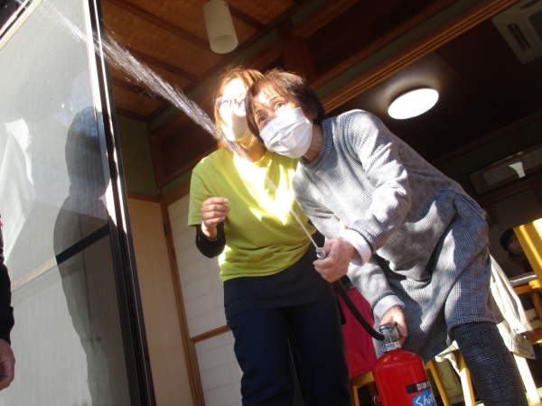 本日は風が強い為に消火訓練は室内から