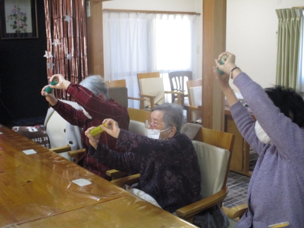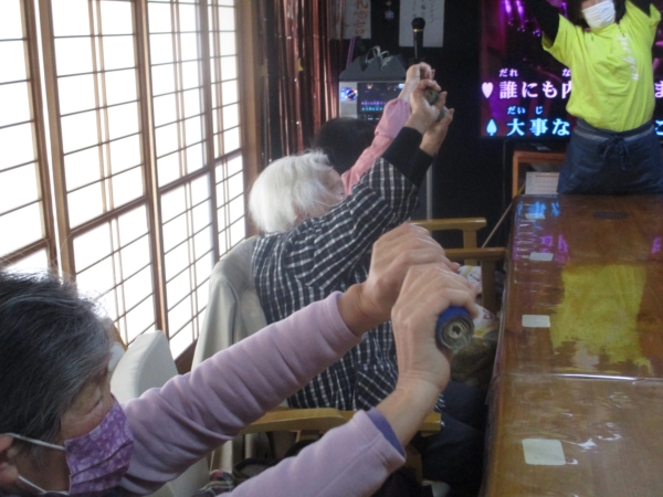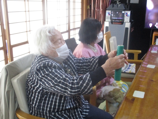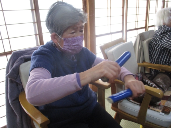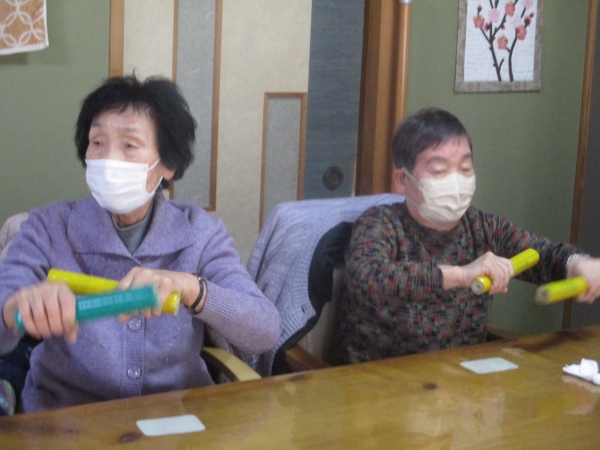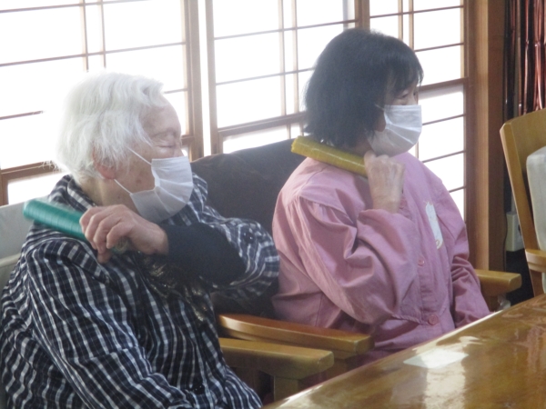 沢山棒体操をしたので、最後は肩たたきで身体をほぐして