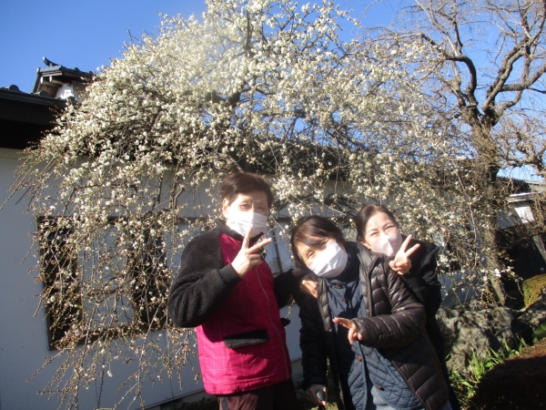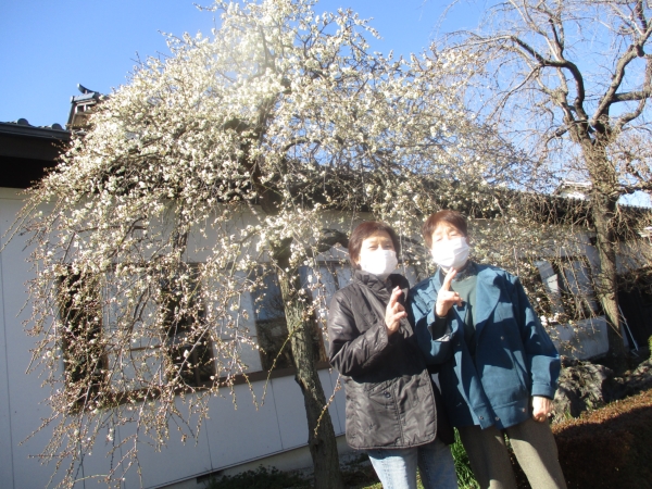 幸せの幸望庵の枝垂れ梅の木が