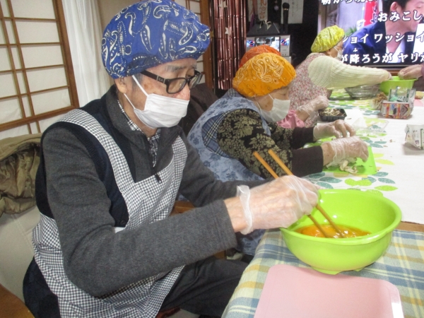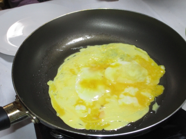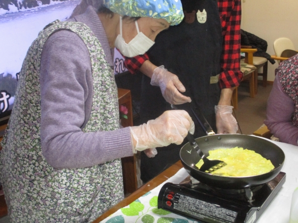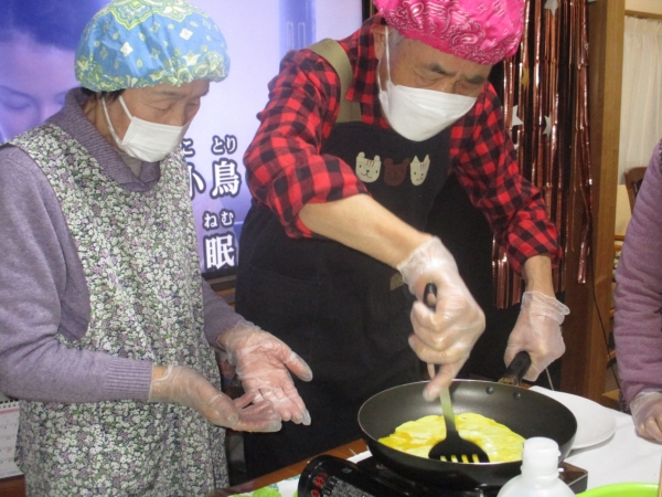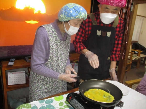 こちらでも父と母が連携プレイで錦糸卵を作っています。