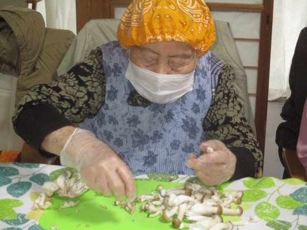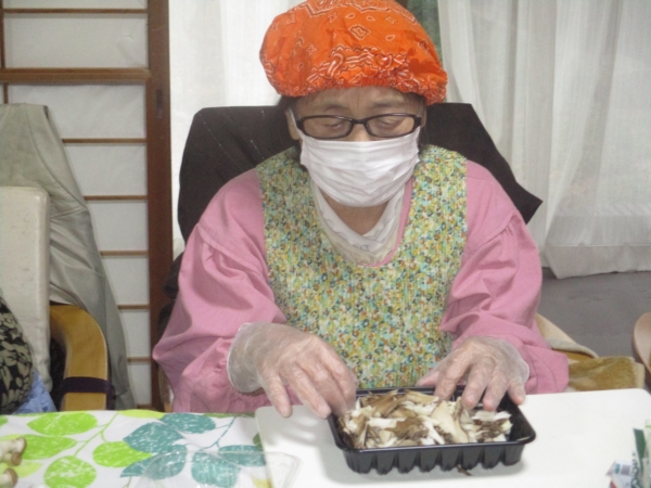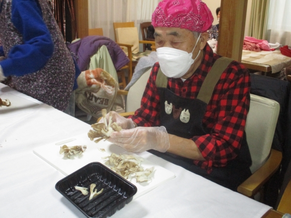 こちらは、スープに入れるキノコ類の下ごしらえをしてくれています。