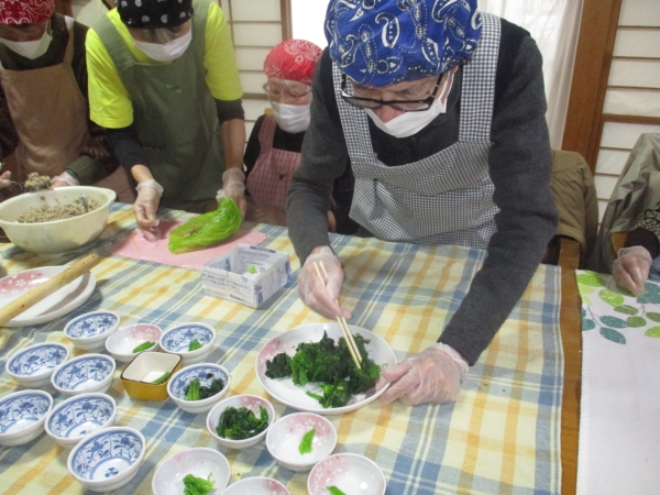 父はほうれん草のお浸しの盛り付けを担当