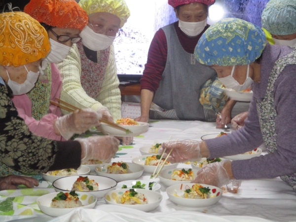 調理も終盤に入り、ちらし寿司の盛り付けといきましょう