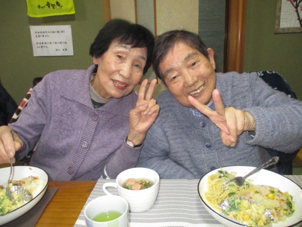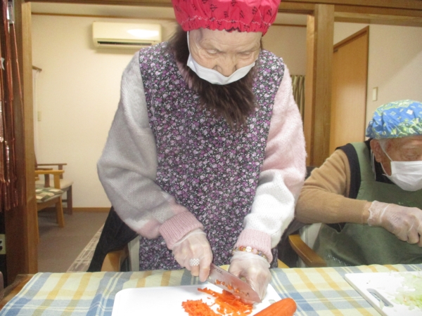 母二人が仲良く切っている野菜達は、スープの具材になります