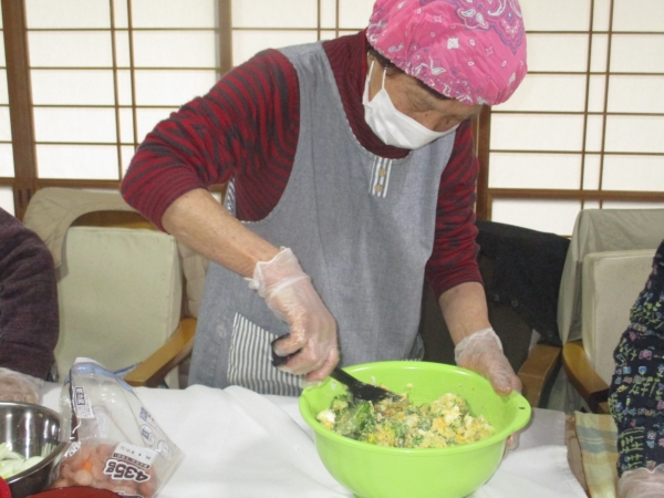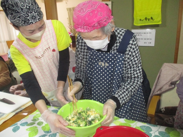 母達が向いてくれたゆで卵はブロッコリーとツナのサラダに変身
