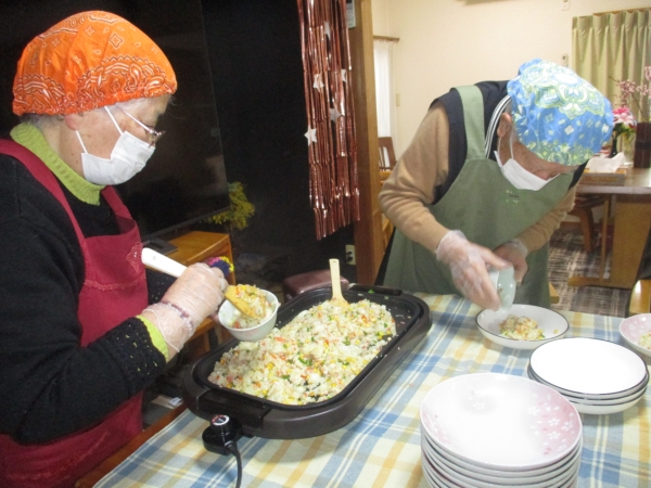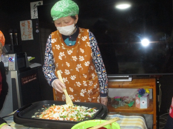 炒めた野菜にご飯を入れ、塩コショウで味を整えます。