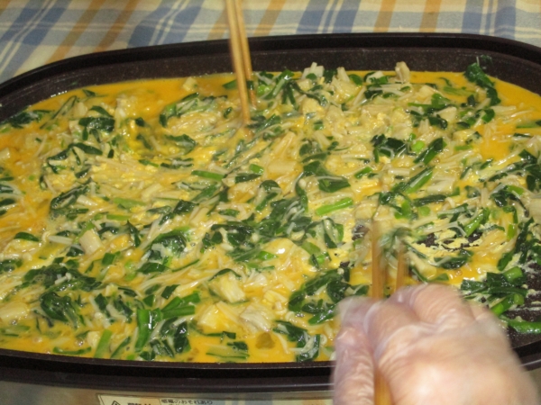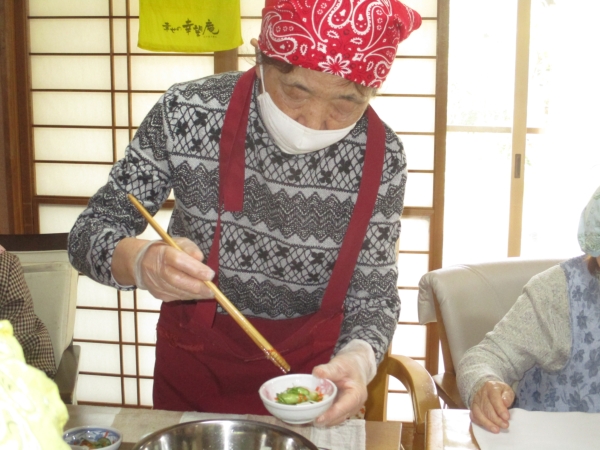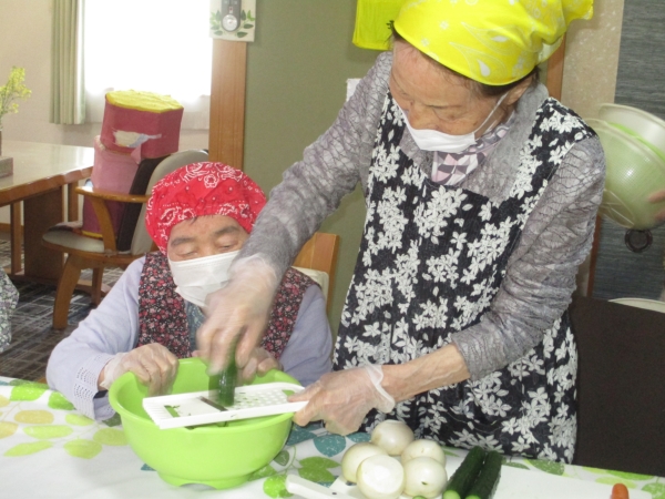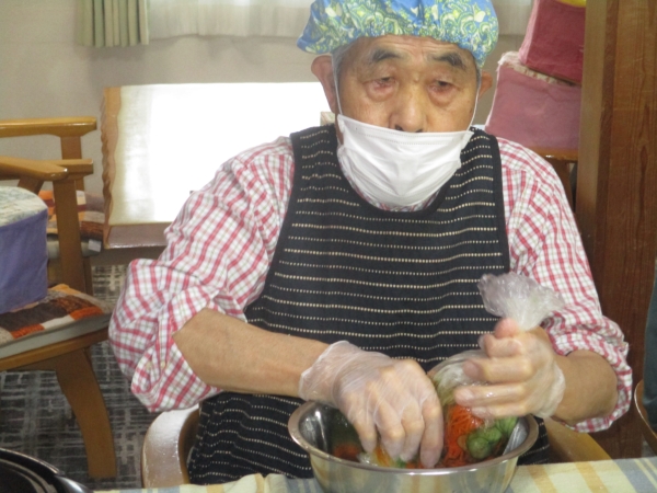 では、父達に浅漬けの素で野菜をモミモミして頂きましょう