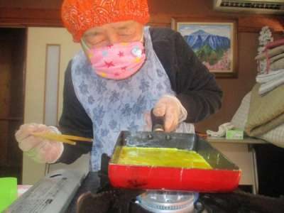絵馬を作業中△