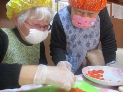 七草粥の副菜作りをます
