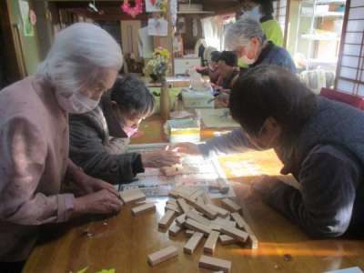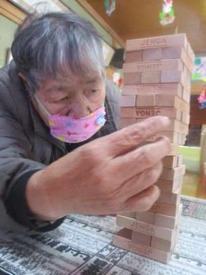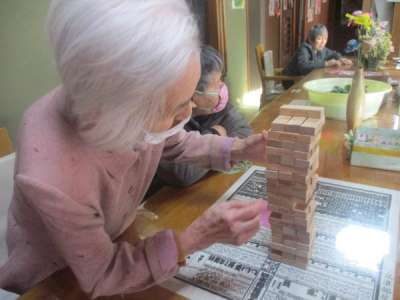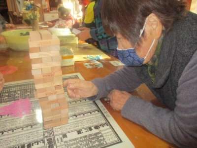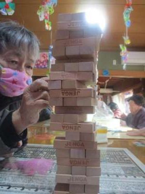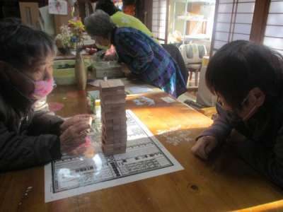 こちらの母達はジェンガを並べています