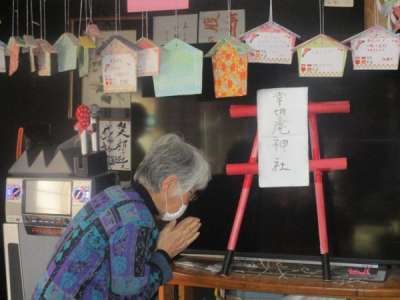 絵馬が出来た母は幸せ神社にお参り