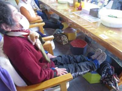 昼食後の休憩時間では、縁側の椅子に座り、ひなたぼっこ