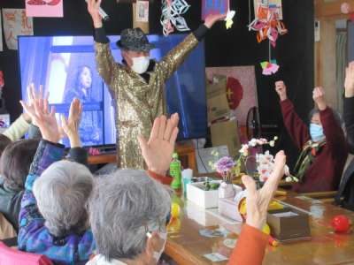 幸せの幸望庵の母たちは手拍子を叩いて、、精一杯の